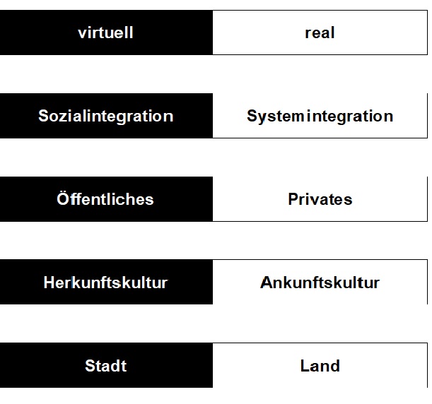 Mit „getrennt wahrgenommenen Systemen“ sind Dichotomien gemeint, die bisher in der Streetwork häufig handlungsleitend waren und im digitalen Zeitalter irritiert werden.